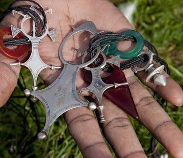Fibulae are used connect/pin scarves and fabric into a tunic dress, they are often engrave in a Berber cross, here you can see several symbols used in ornament as narrative and as protection for the wearer. Or using Tifinigah their 33 letter alphabet.