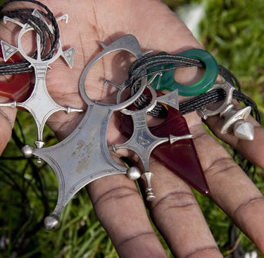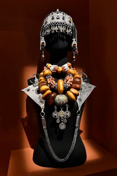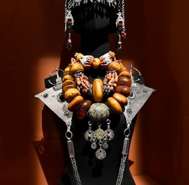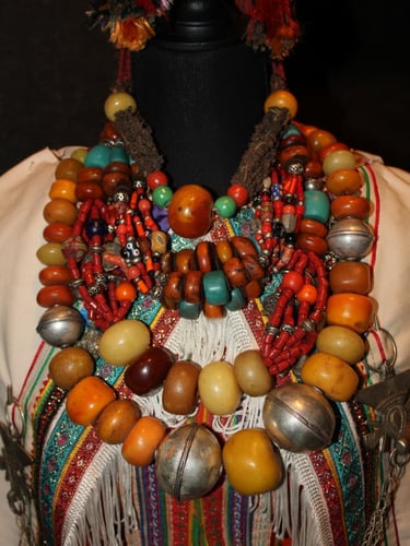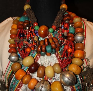 Amazigh jewelry is large, showy, colorful, often including amber and copal beads adding such a beautiful touch.